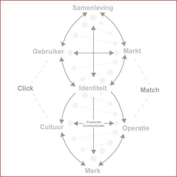 Het adviesmodel dat gehanteerd wordt, bepaalt het communicatieve DNA van een organisatie, de identiteit, als basis van de positionering.